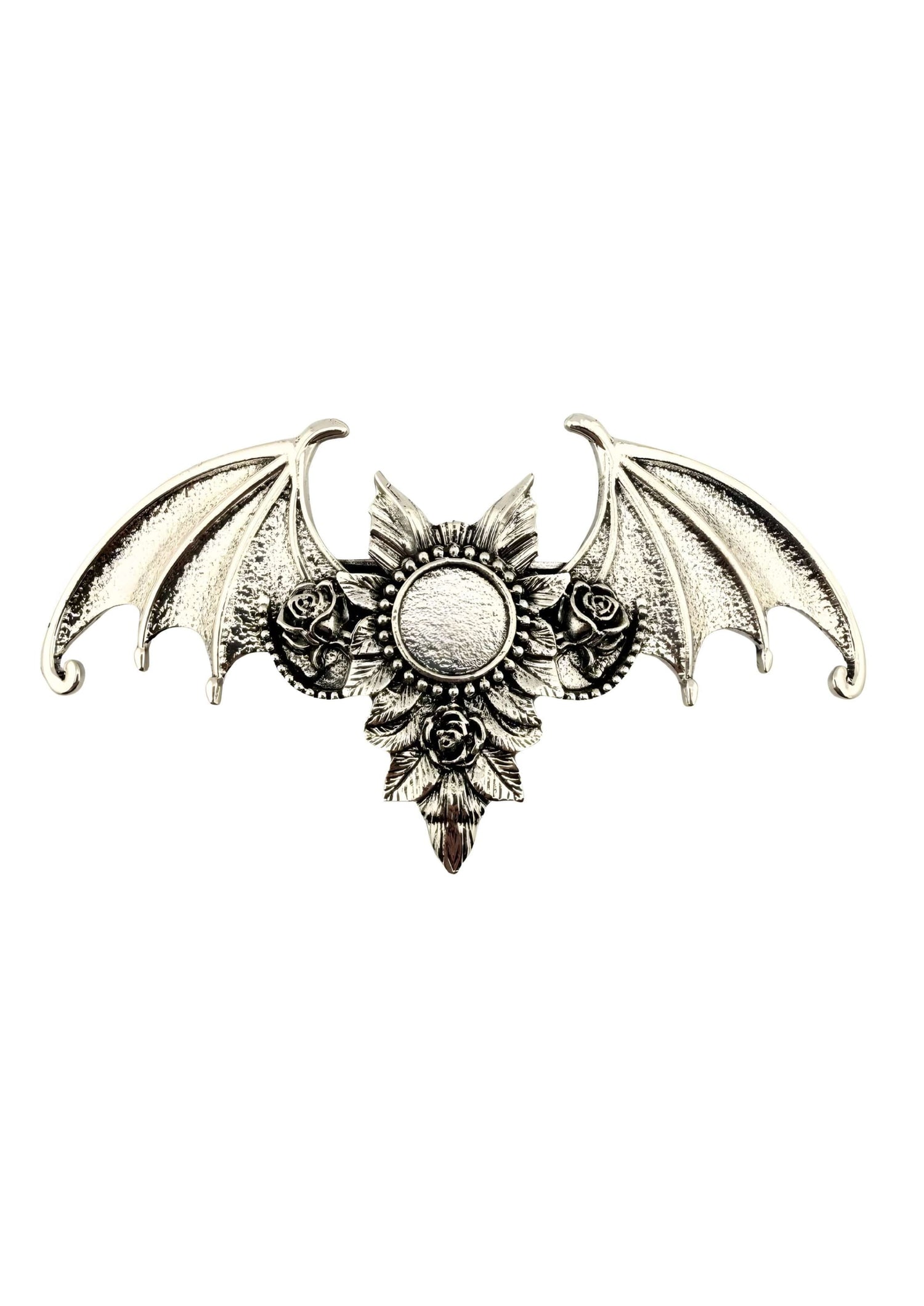 Bei dieser Haarklammer trifft düstere Eleganz auf dunkle Träume. Diese gotische Haarklammer vereint filigrane Fledermausflügel mit zarten Rosendetails zu einem visuellen Statement. Sicherer Halt trifft auf atmosphärische Schönheit – ein Hauch von Dunkelheit für jeden Tag.