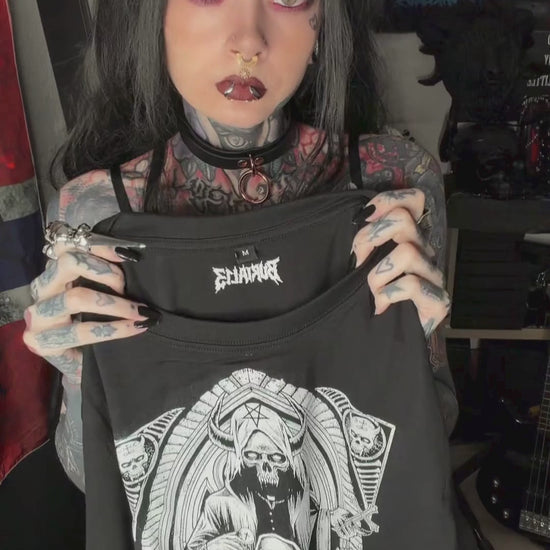 Schwarze Bio-Baumwolle trifft auf düsteres Design inspiriert von Beichtstühlen, dem Ort wo Sünden geflüstert Geheimnisse preisgegeben werden. Das CONFESSIONAL Shirt vom Label Burial13 ist unverzichtbar für Fans von dunkler Ästhetik.